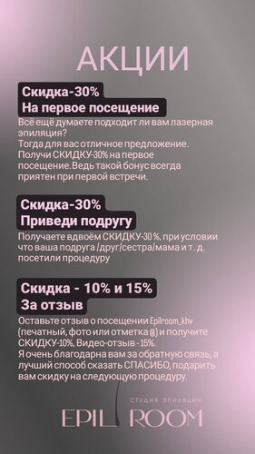 EPILROOM —Уютная студия эпиляции для женщин и мужчин.Эпиляция любых зон, деликатный подход, профессиональные и опытные мастера.